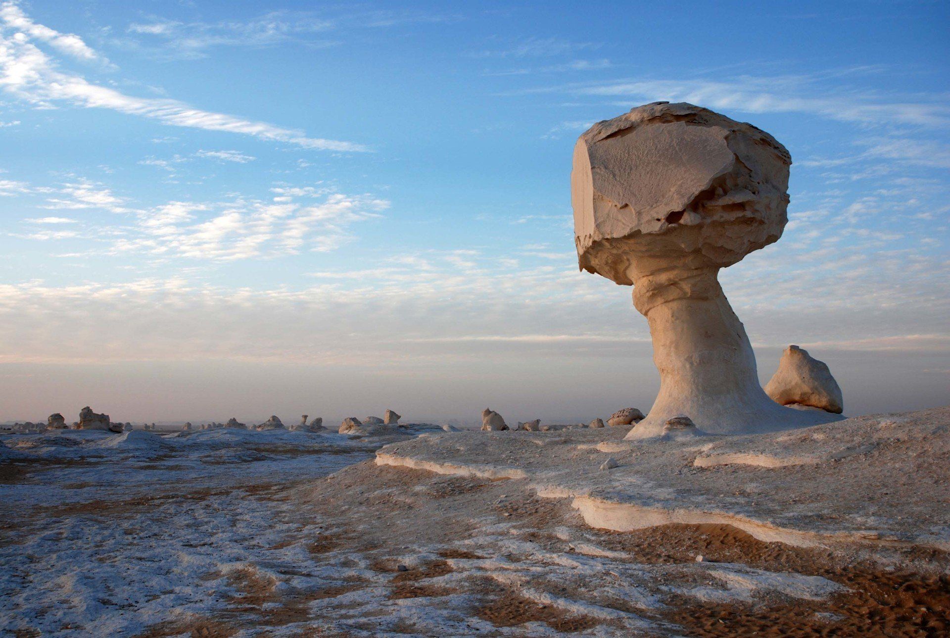 Day 2 : Stroll in Agabat, pierced rocks, hunting for "flower stones". Exit through the dunes of Karawi - Picnic and swimming in an oasis. After mide, entry into the famous White Desert (the old and the new). Bivouac in the heart of these astonishing concretions. Dinner on a wood fire, night under the stars in a comfortable camp.